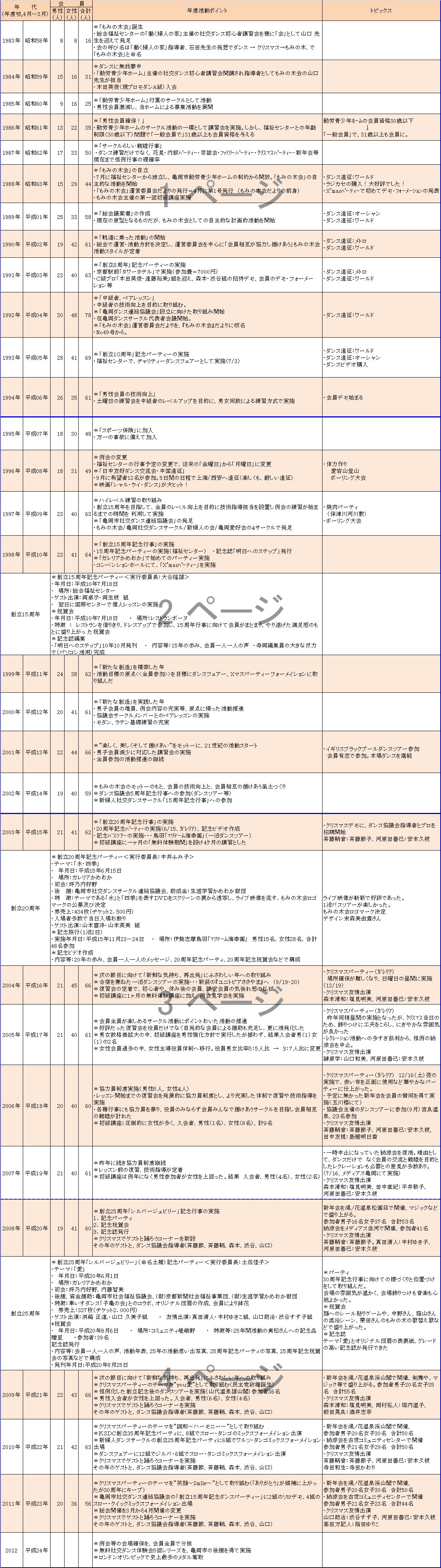 社交ダンスサークル「もみの木会」年表  平成25年1月現在